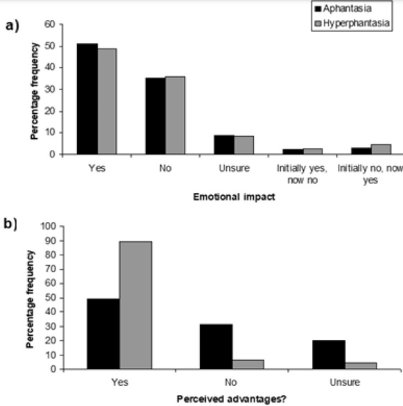 aphantasics were singificantly less likely to see their condition as adventagous, and more likely to answer ‘unsure’
